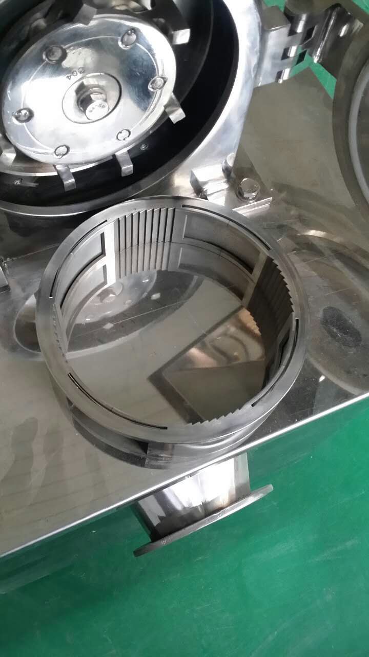 本機(jī)利用活動(dòng)齒盤(pán)和固定齒盤(pán)的高速相對(duì)運(yùn)動(dòng),使被粉碎物經(jīng)齒沖擊、磨擦及物料彼此間沖擊等綜合作用獲得粉碎。本機(jī)結(jié)構(gòu)簡(jiǎn)單、堅(jiān)固、運(yùn)轉(zhuǎn)平穩(wěn)、粉碎效果良好,被粉碎物可直接由主機(jī)磨腔中排出,粒度大小通過(guò)更換不同孔徑的網(wǎng)篩獲得,另外該機(jī)為全不銹鋼。機(jī)殼內(nèi)壁全部經(jīng)機(jī)加工達(dá)到表面平滑,改變了以前機(jī)型內(nèi)壁粗糙、積粉的現(xiàn)象、使藥品、食品、化工等生產(chǎn)能符各個(gè)生產(chǎn)商的需求,達(dá)到了GMP的要求。